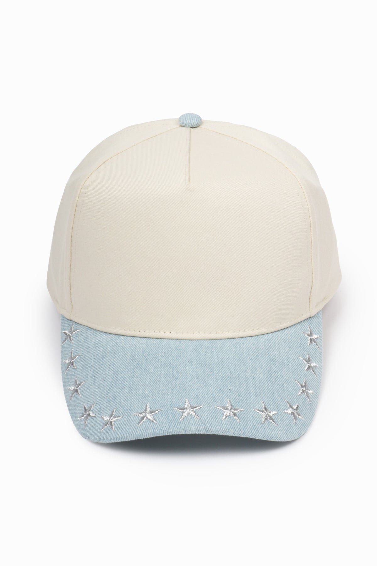 Stars Embroidered Brim Denim Two Tone 5 Panel Baseball Cap